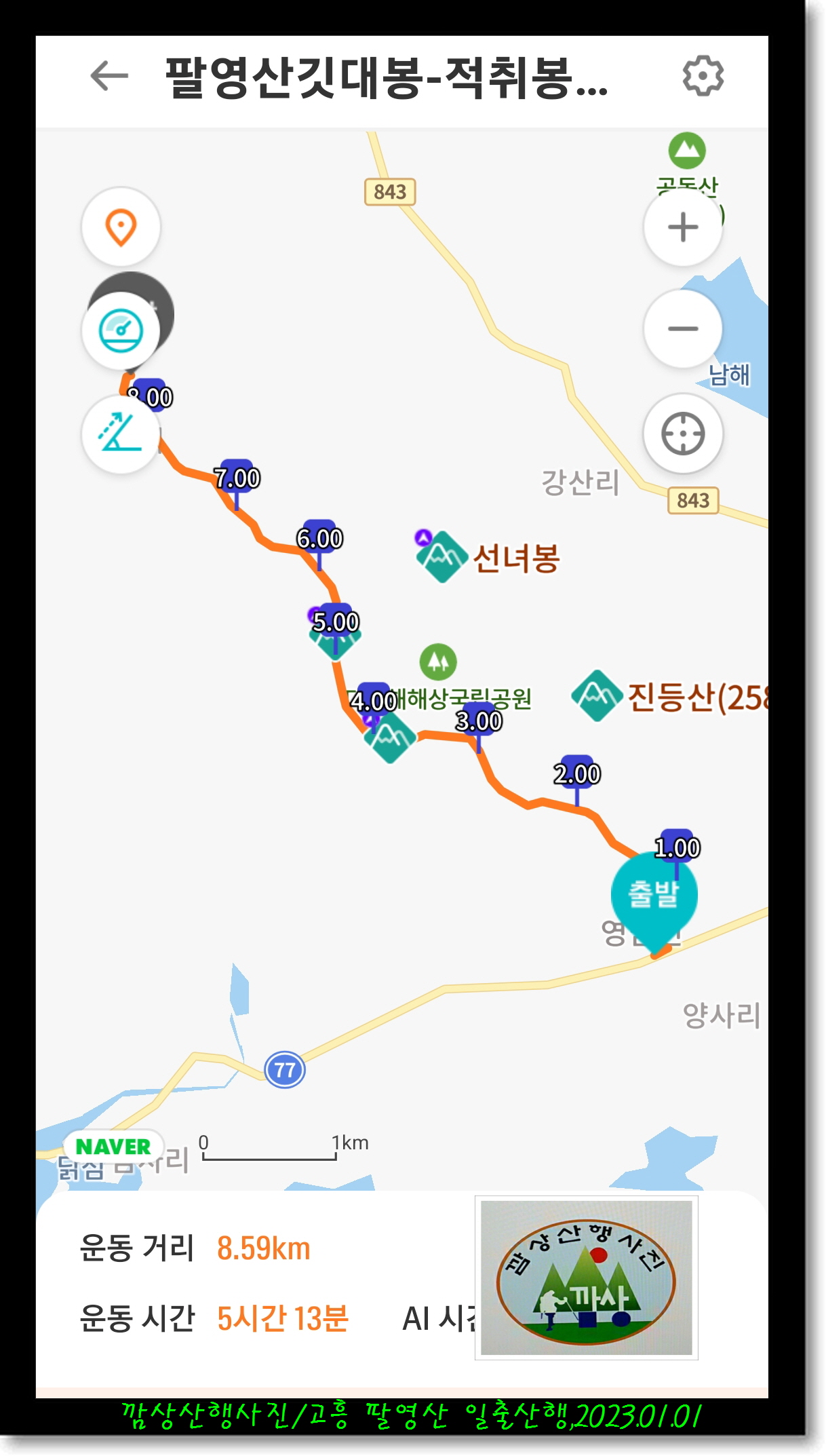 남포미술관~바른등재~팔영산(깃대봉)~적취봉~칠성봉~통천문~두류봉~오로봉~사자봉~상황봉~성주봉~유영봉~흔들바위~능가사