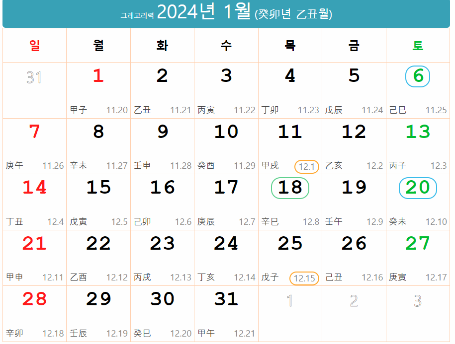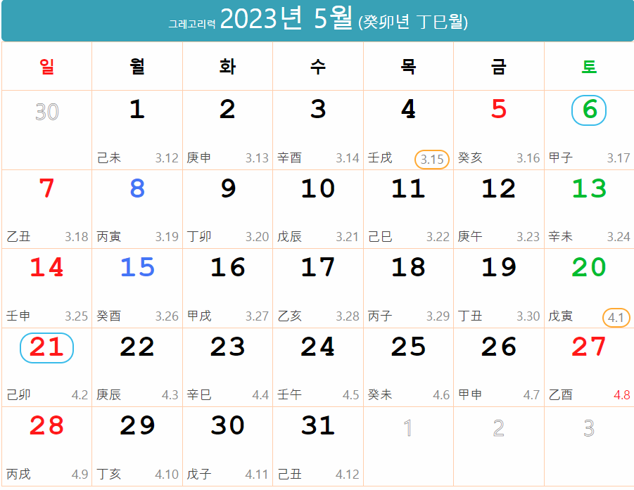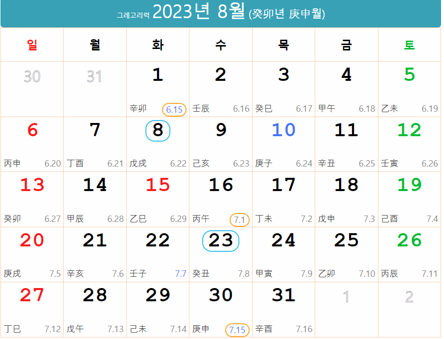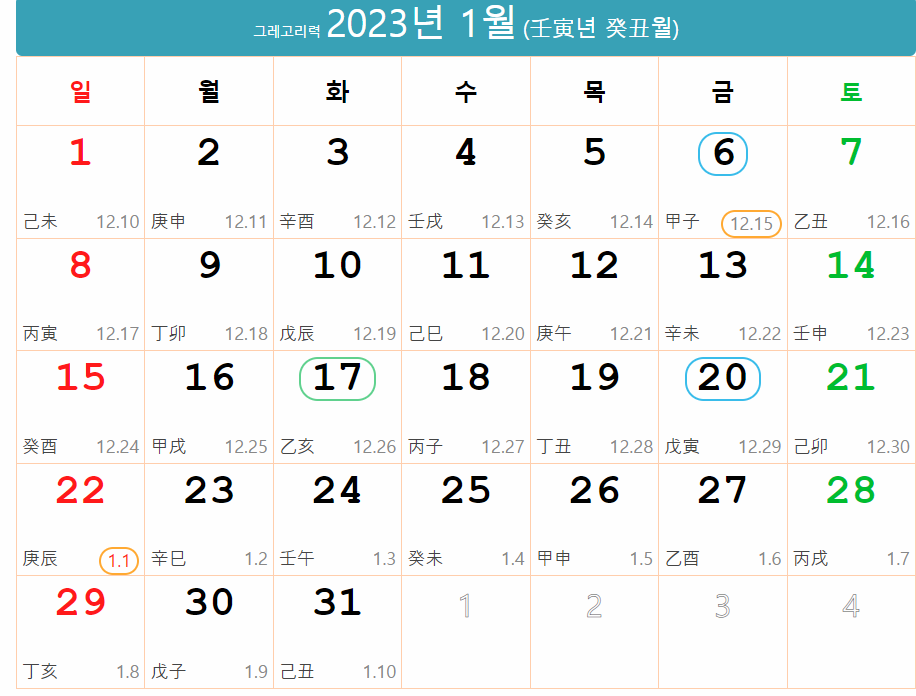 2023년음력 간지달력