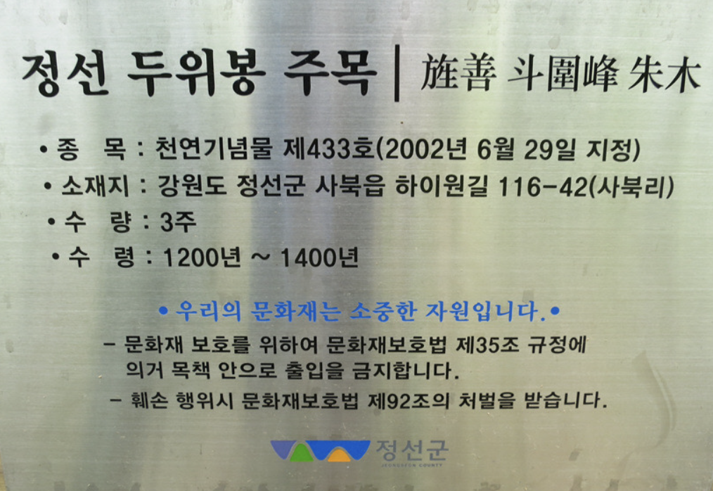 *코스:단곡주차장 - 감로수샘터 - 아라리고개 - 철쭉군락지 - 두위봉정상 - 산쭉쉼터 - 주목군락지 - 도사곡주차장