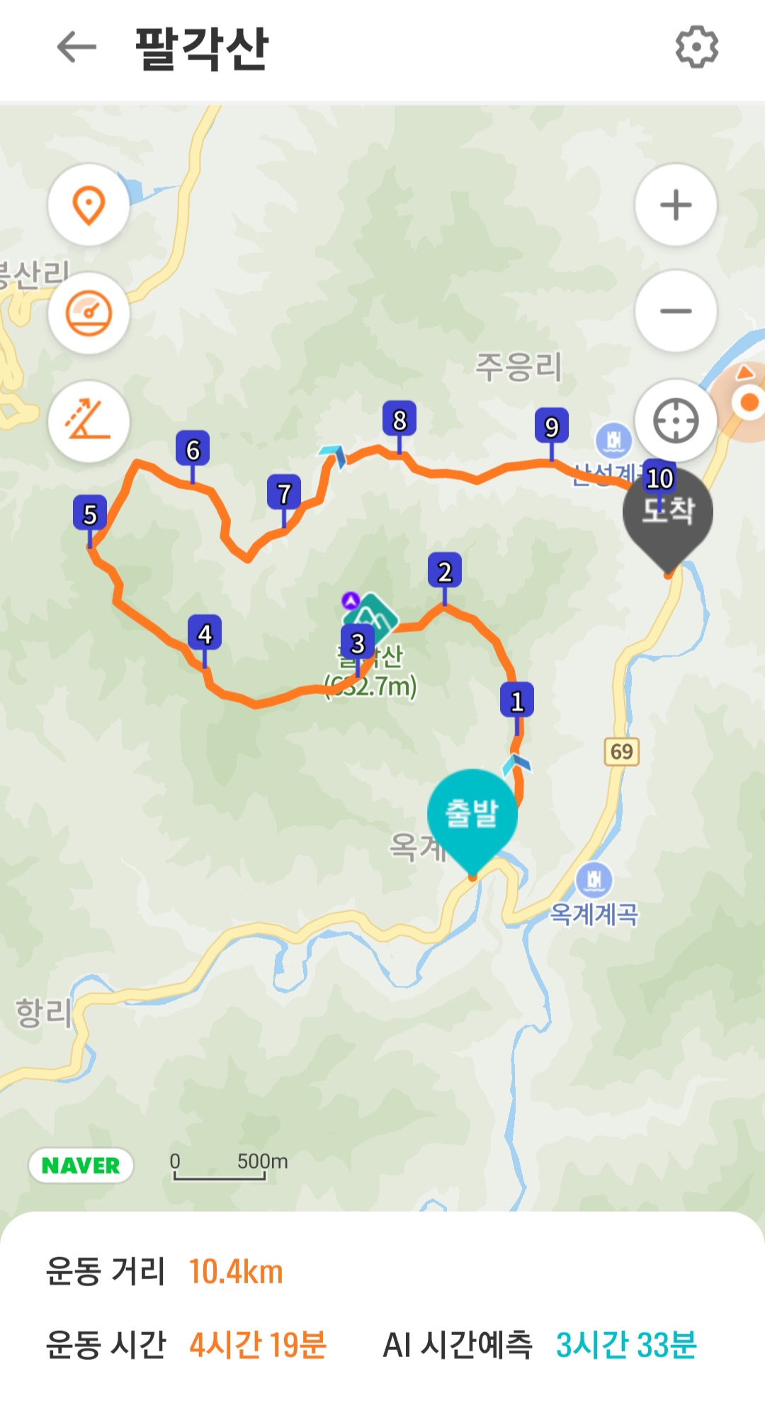 *침수정~1봉~7봉~배지기골~팔각산(8봉)~다락골갈림길~독립문바위~황소바위~출렁다리~산림욕장주차장