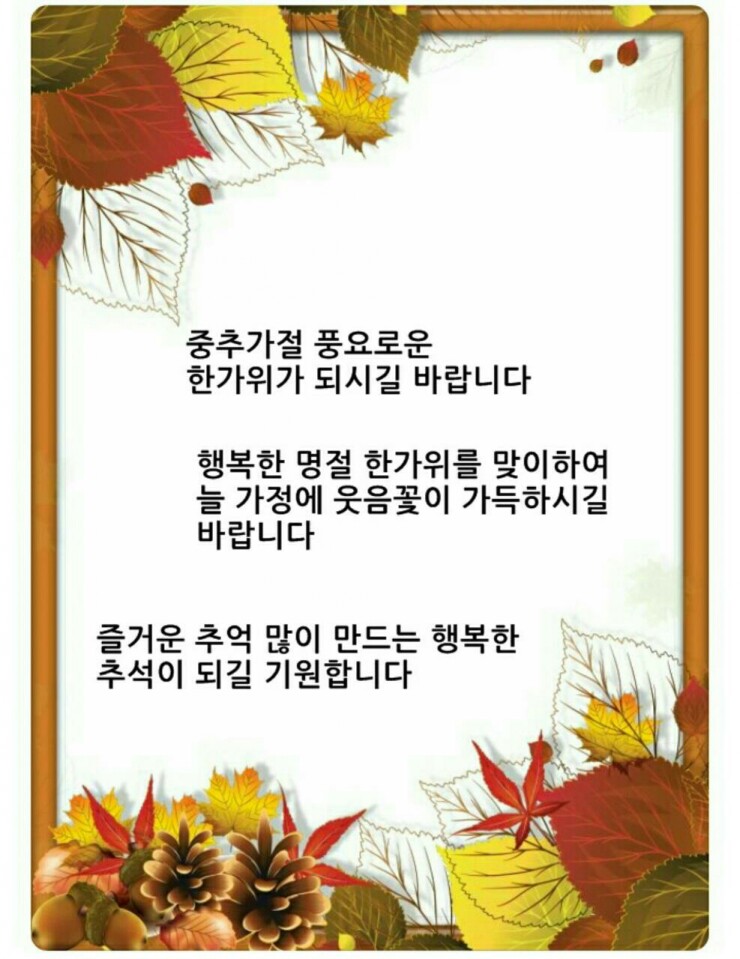 민족 최대의 명절인만큼 풍요로움이 가득하시길 바라며, 가족과 함께 화목하고 즐거운 시간 보내시고, 오시는 귀성길 기분 좋게 안전운전 하시길 바랍니다.
