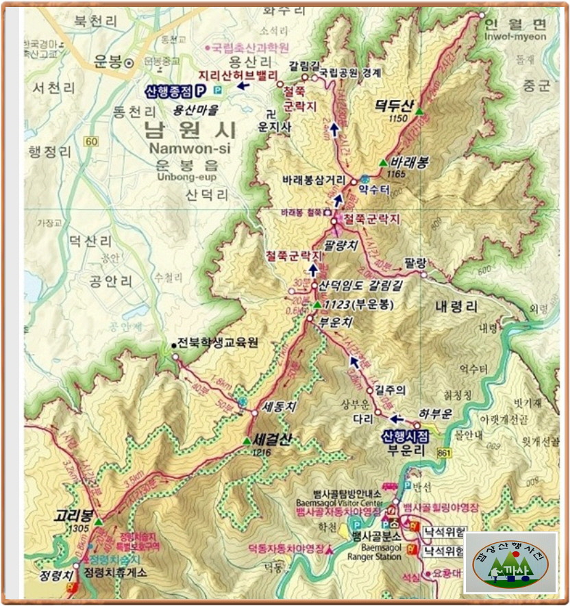 *전북학생교육원~세동치~부운치~철쭉굴락지~팔랑치~바래봉삼거리~바래봉(빽)~바래봉삼거리~철쭉샘~용산리주차장/GPS트랭글기록