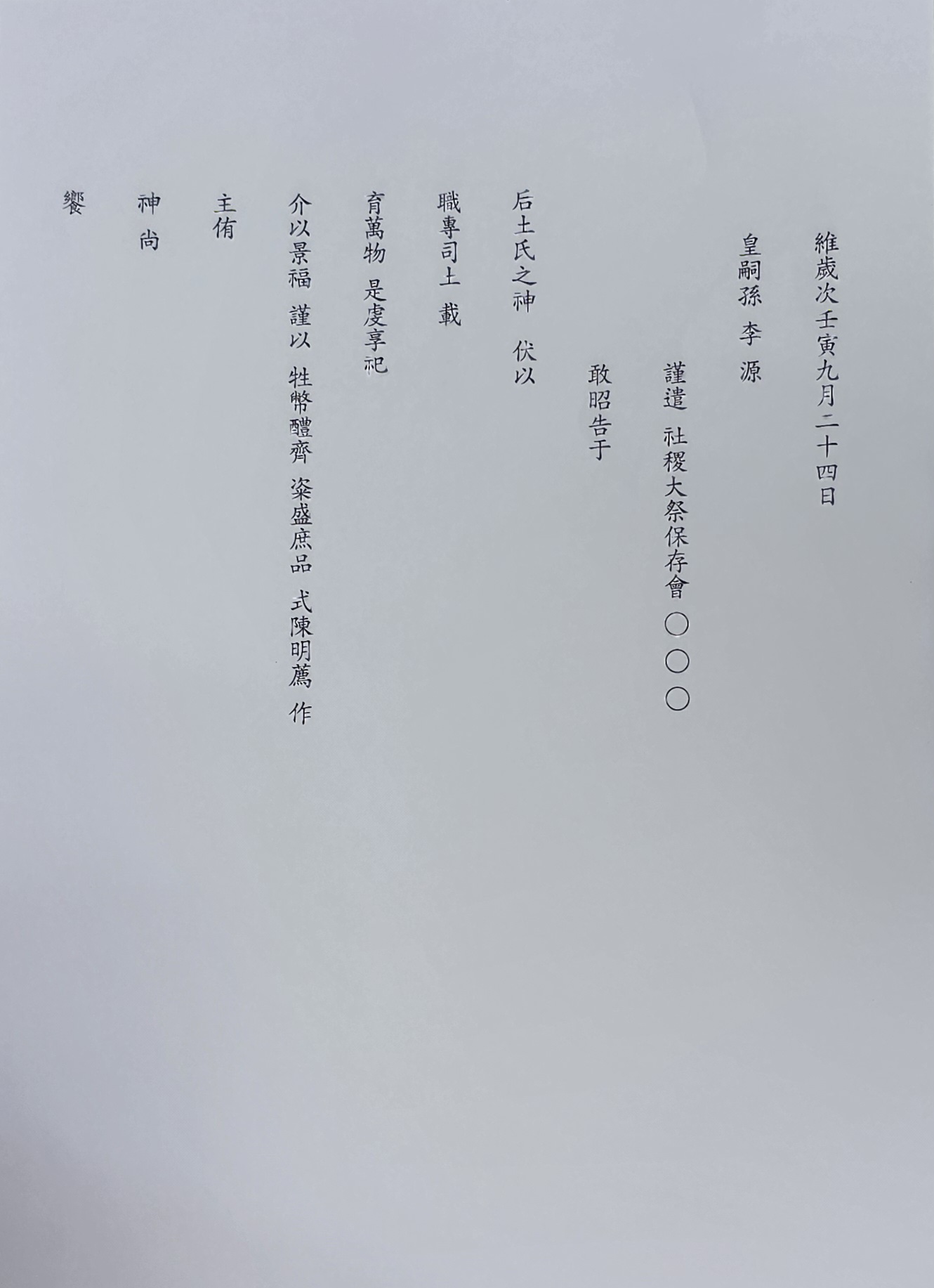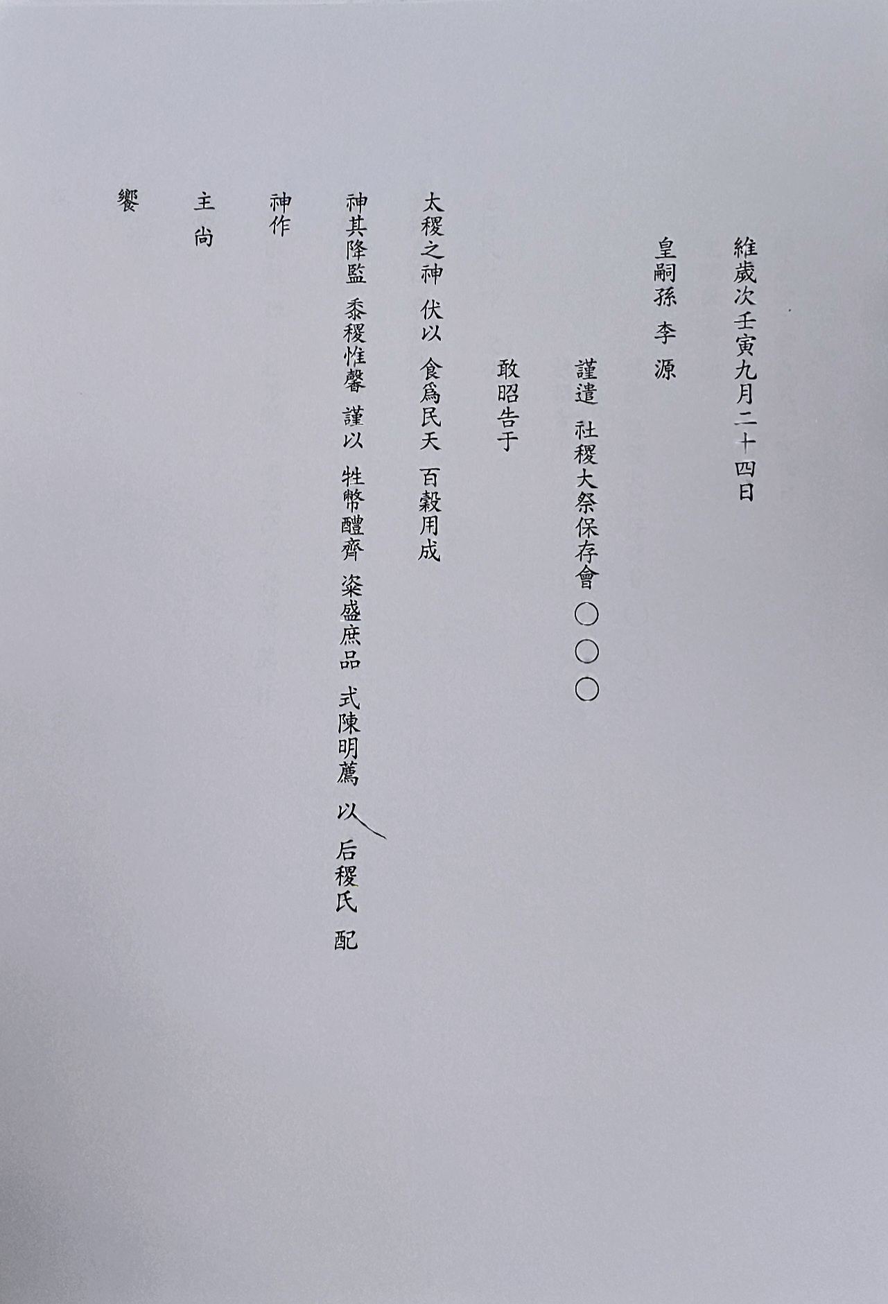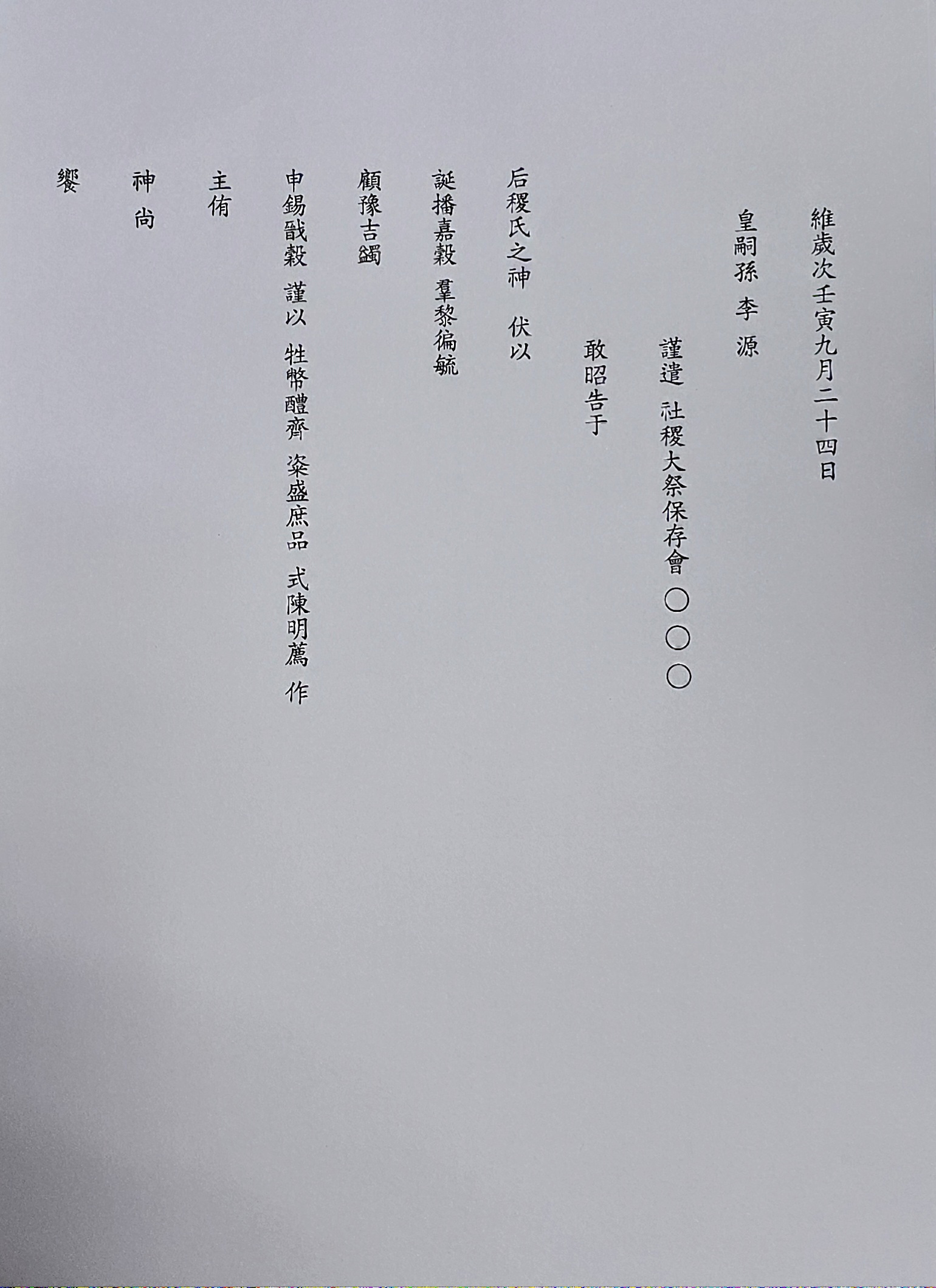 〇禮儀使導皇嗣孫陞自北階詣太社神位前南向立(예의사도황사손승자북계예태사신위전남향립)